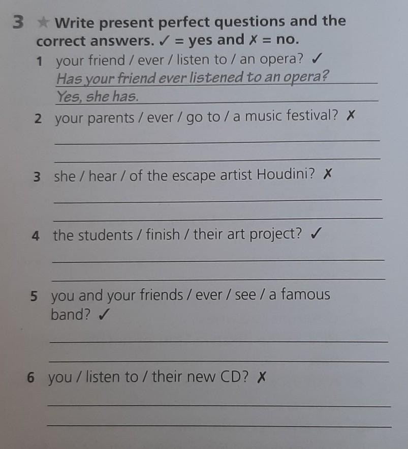 3. Write present perfect questions and the