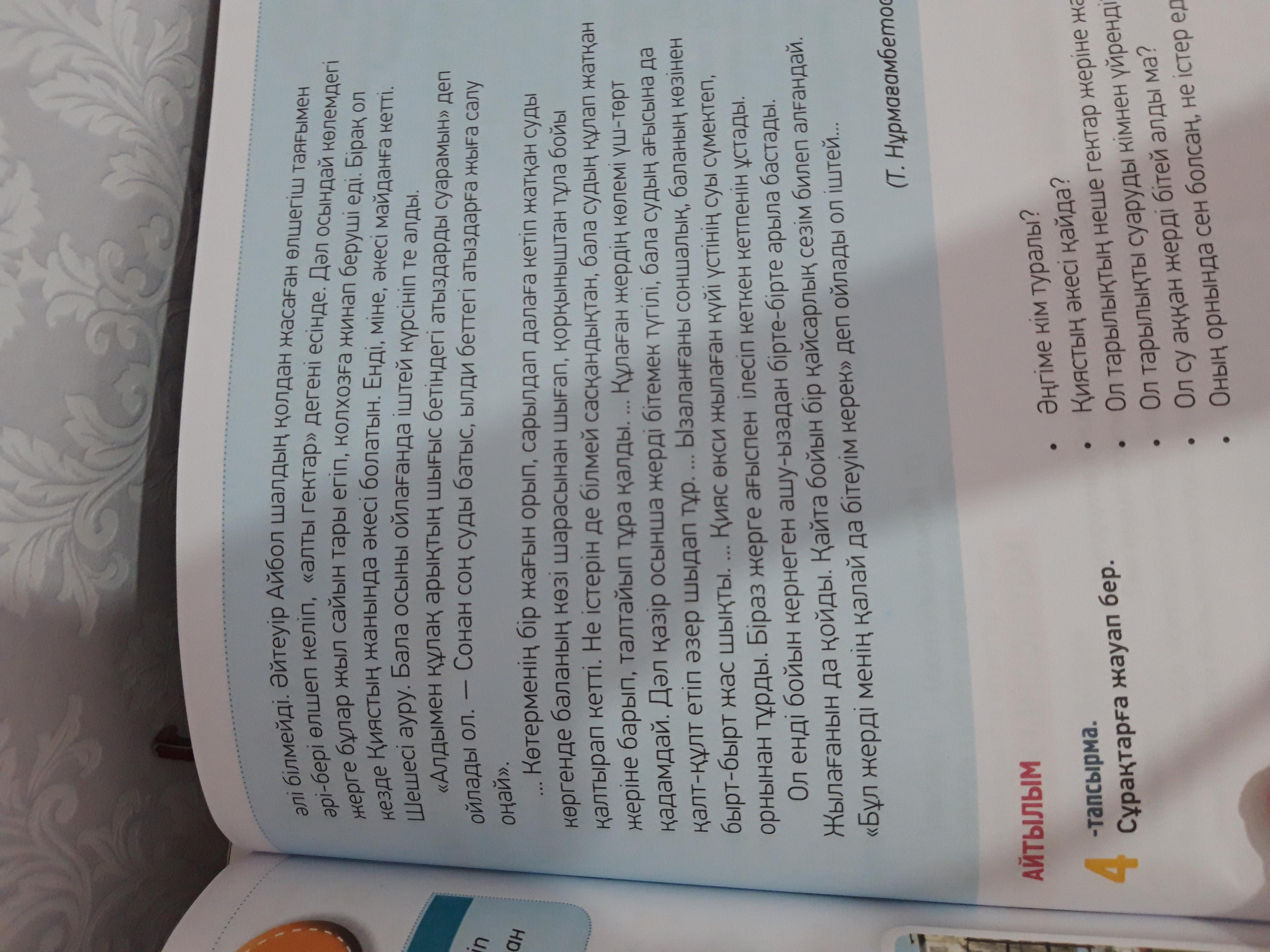 Страница 118. 3 - тапсырма. Текст внимательно прочитать. Из текста переписать в тетрадь, в столбик слова, которые отвечают на вопросы: кімнің? ненің?