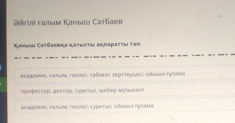 Қаныш Сәтбаевқа қатысты ақпаратты тап.
