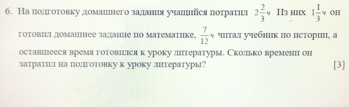 6. На подготовку домашнего задания учащийся потратил 2-ч ІІз них 1-ч он
