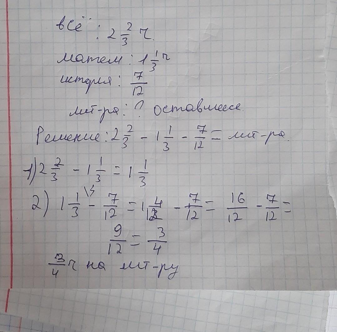 оставшееся время готовился к уроку літературы. Сколько времени он