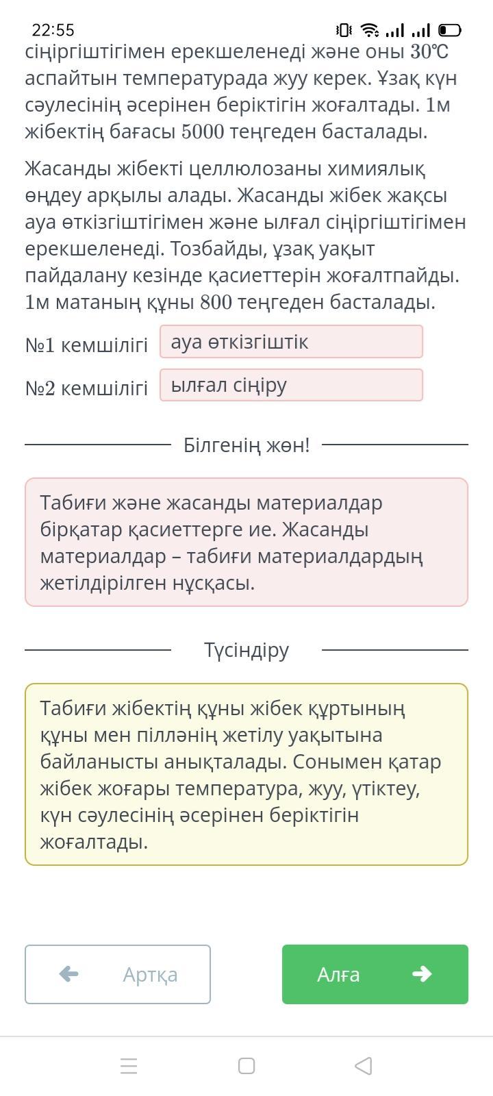 Табиғи және жасанды талшықтар туралы мәтінді оқып, табиғи талшықтың екі кемшілігін анык