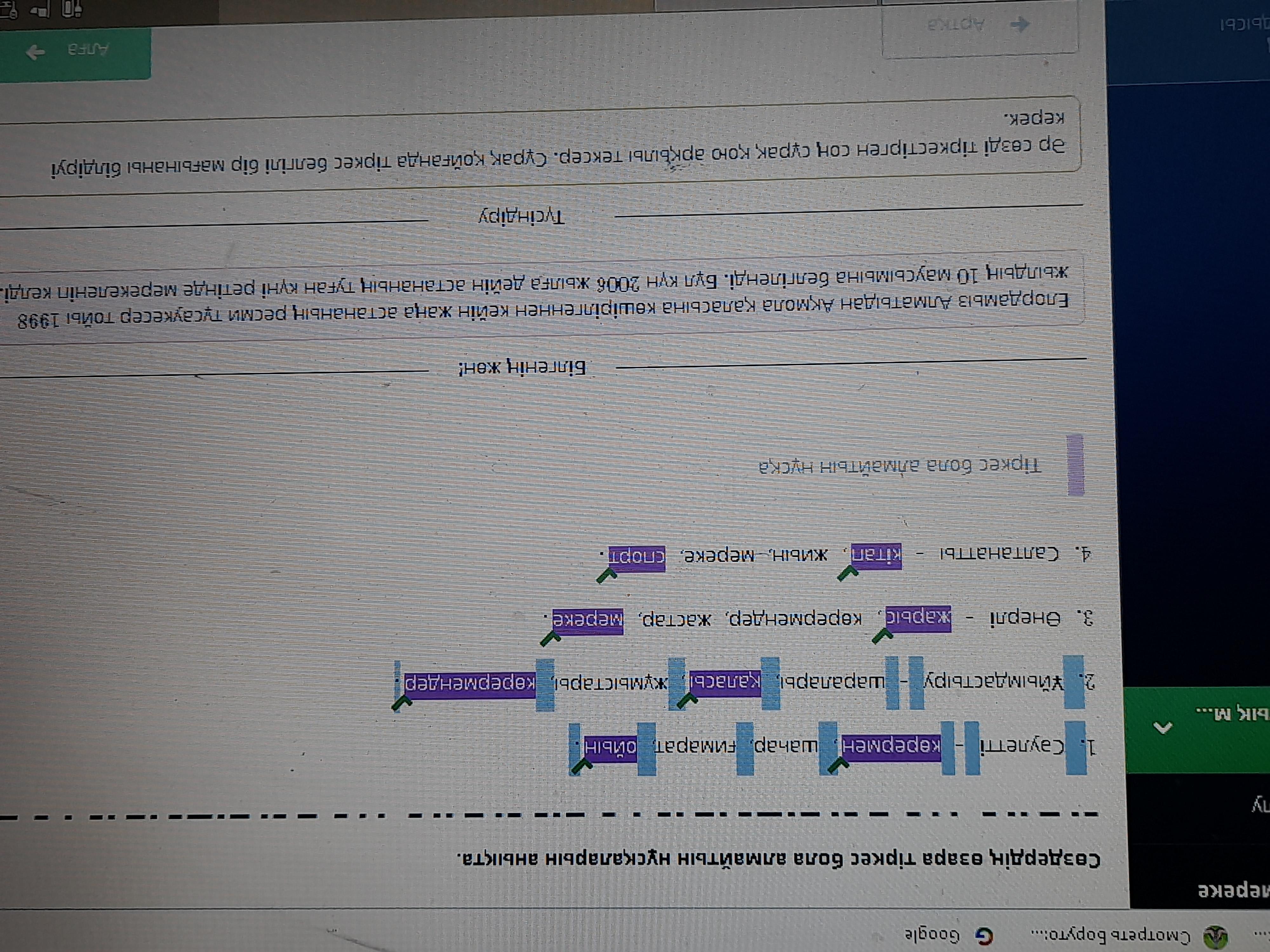 Сөздердің өзара тіркес бола алмайтын нұсқаларын анықта.