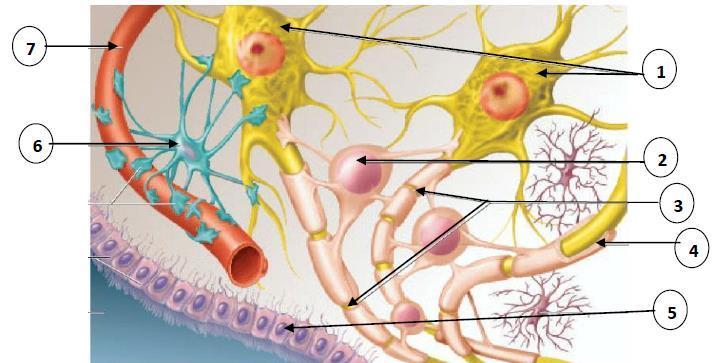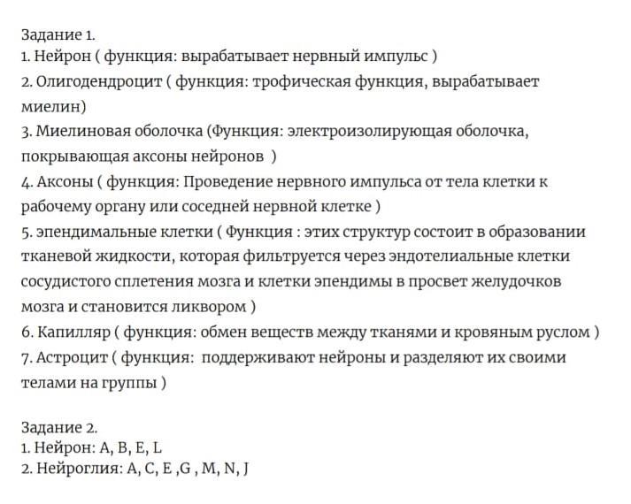 Исследуйте срезы нервной ткани, используя различные изображения нервной ткани. Изучите описательную схему ниже и напишите названия клеток и их функции из схемы нервных и глиальных клеток в следующем графике.