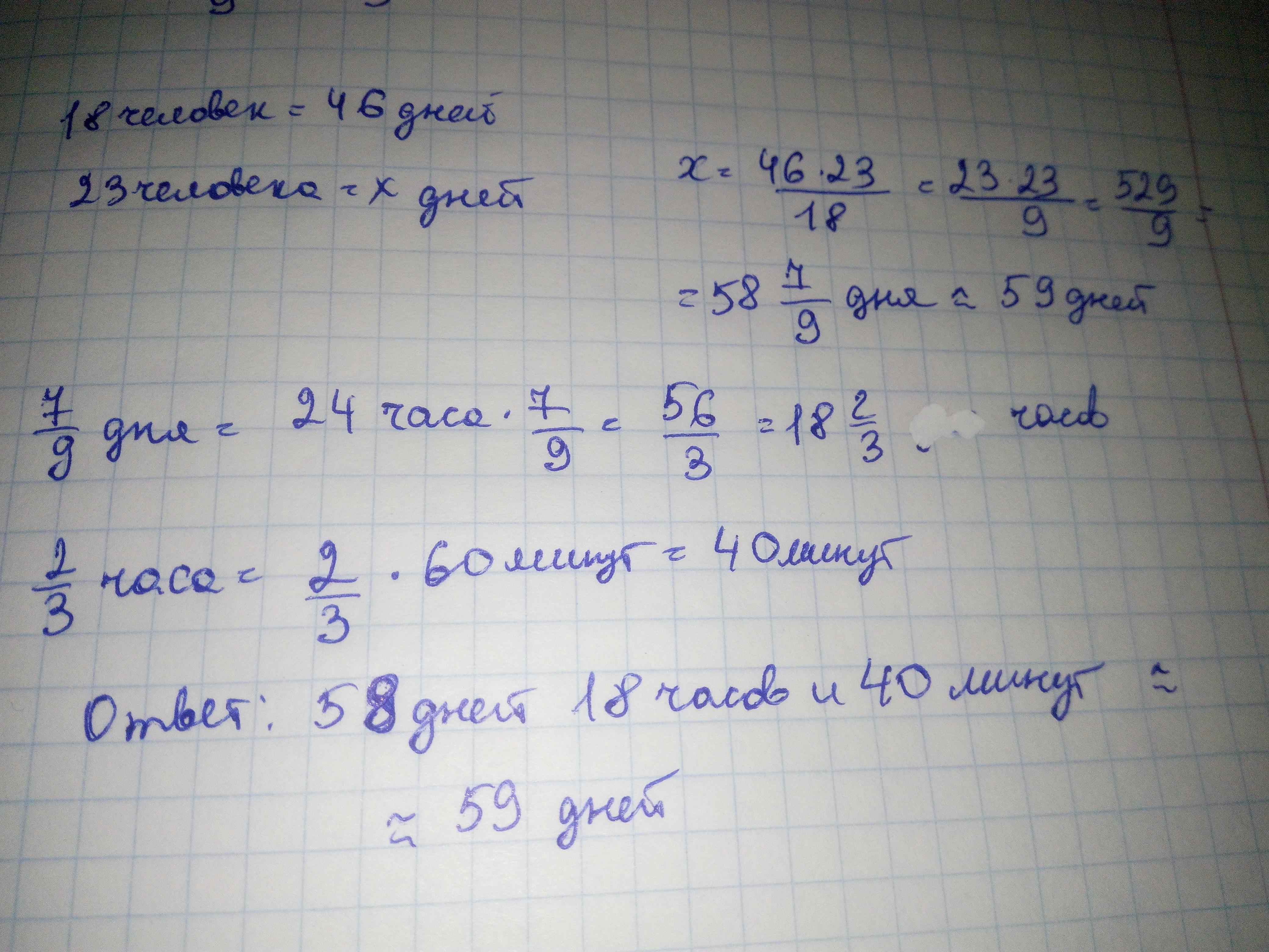 неправильно как 23 человека строят за 59 дней если 18 за 46 дней