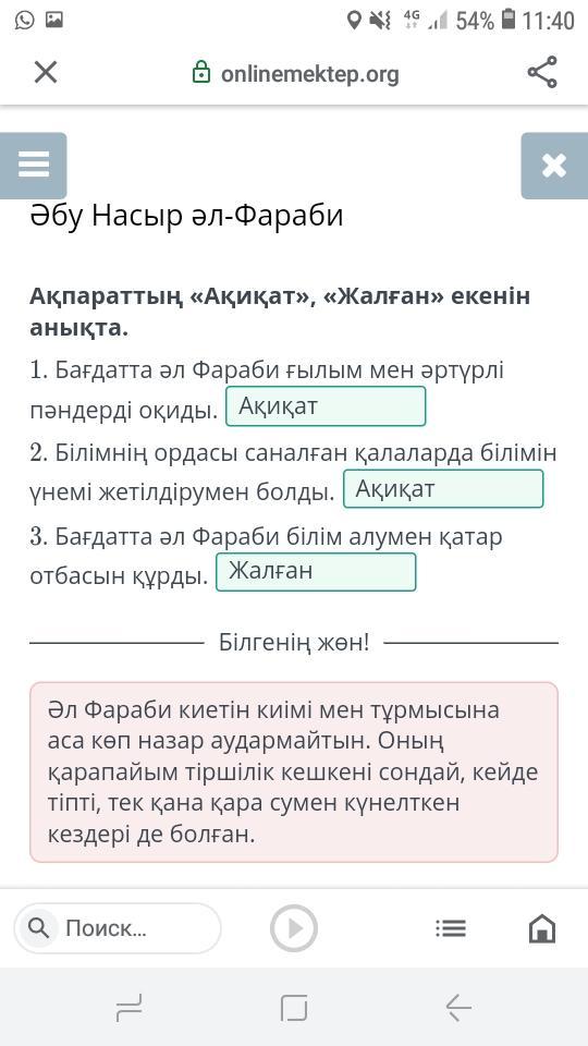 Ақпараттың «Ақиқат», «Жалған» екенін анықта.