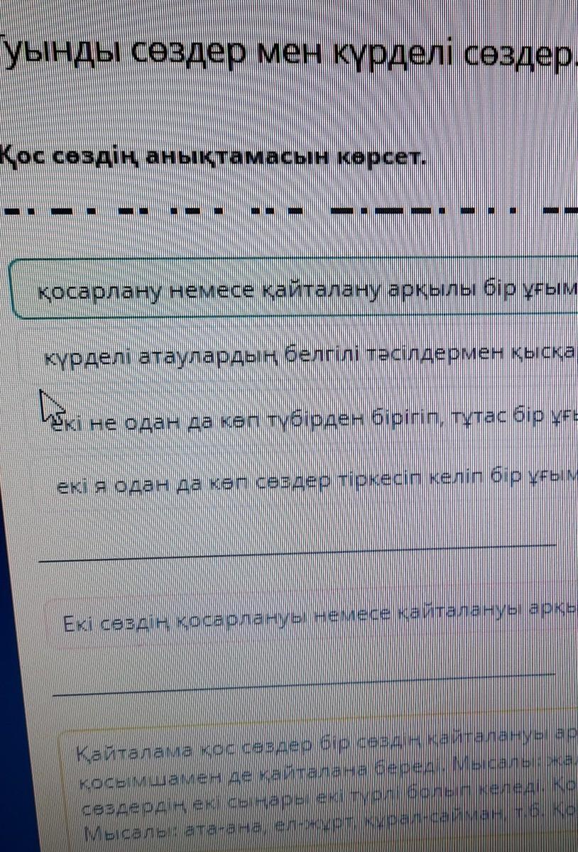 екі не одан да көп түбірден бірігіп, тұтас бір ұғымды білдіреді