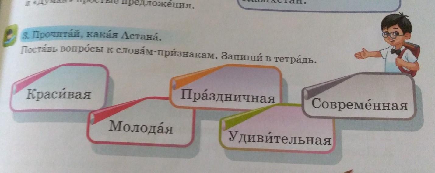 Поставь вопросы к словім признакам. Запиши в тетрадь.