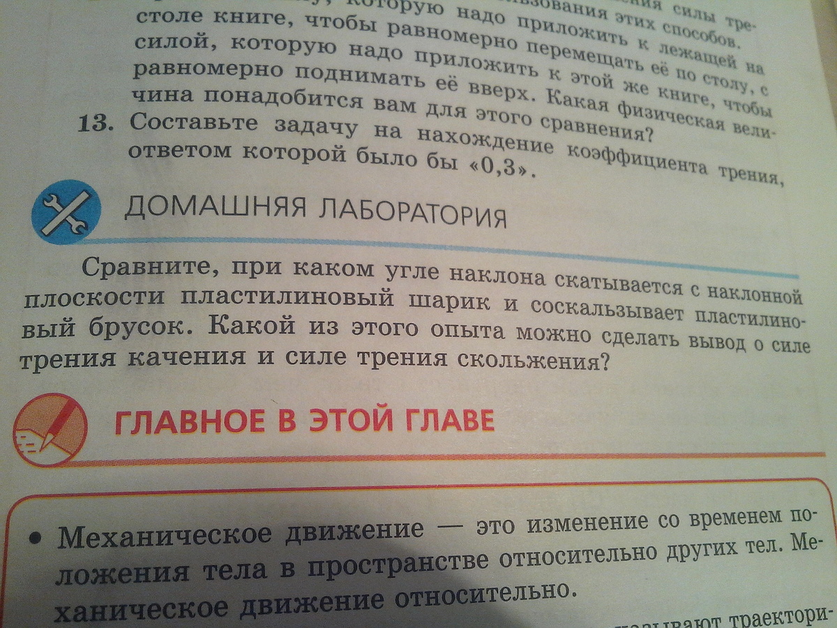 Если на наклонную плоскость Положить плоский кусочек пластилина то сила трения удерживает его на наклонной плоскости, а если положить шарик то шарик скатывается. Вывод сила трения качения меньше чем сила трения скольжения.