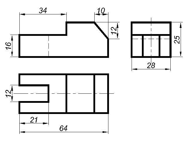 1. Построить третью проекцию модели по двум заданным и аксонометрию модели