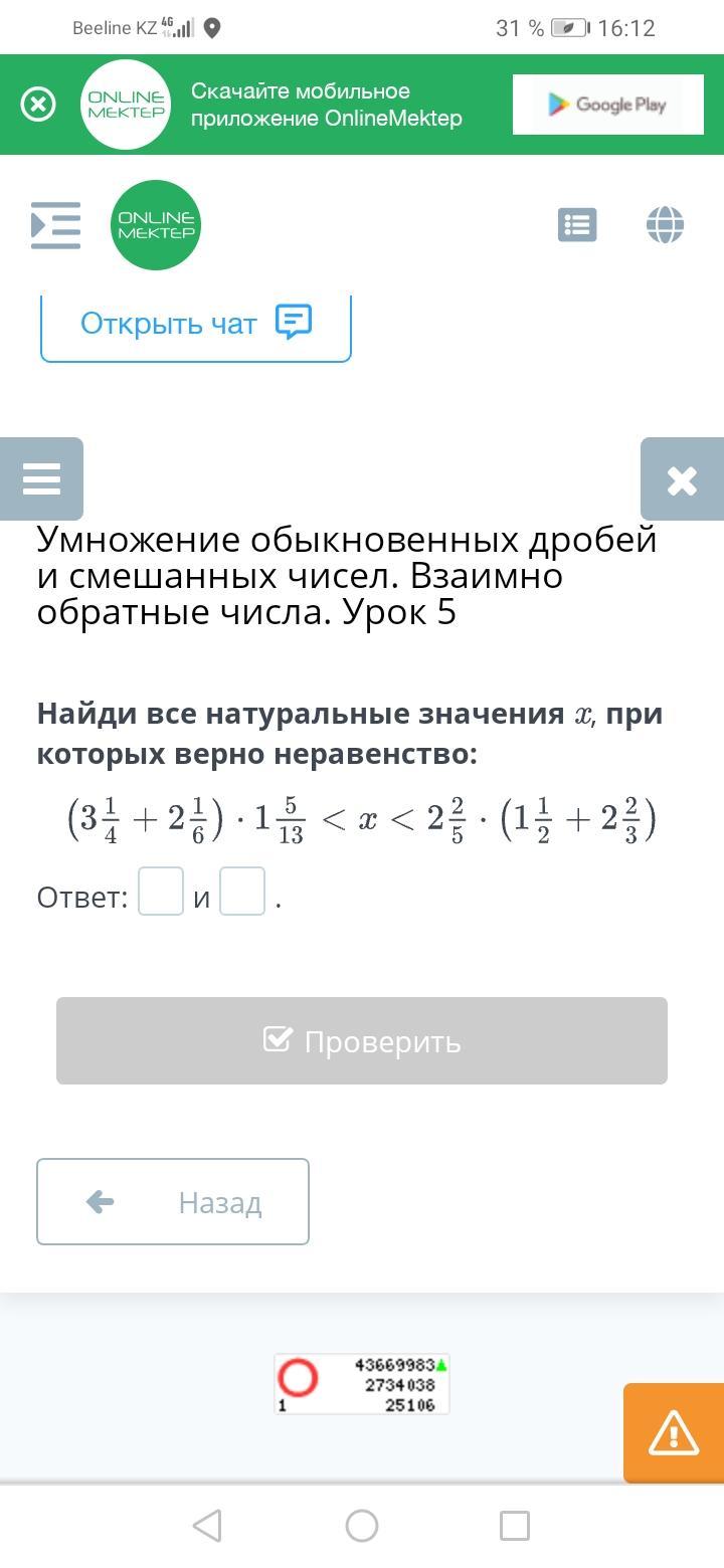 Умножение обыкновенных дробей и смешанных чисел. Взаимно обратные числа. Урок 5 Найди все натуральные значения x, при которых верно неравенство: