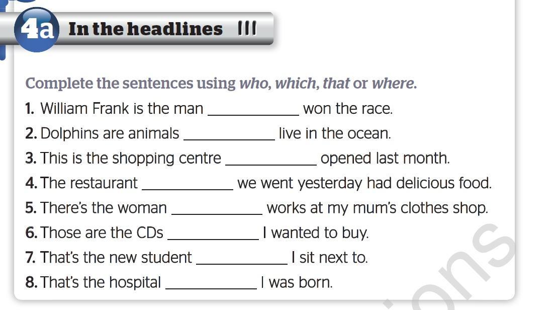 we went yesterday had delicious food. works at my mum's clothes shop. I wanted to buy. I sit next to.