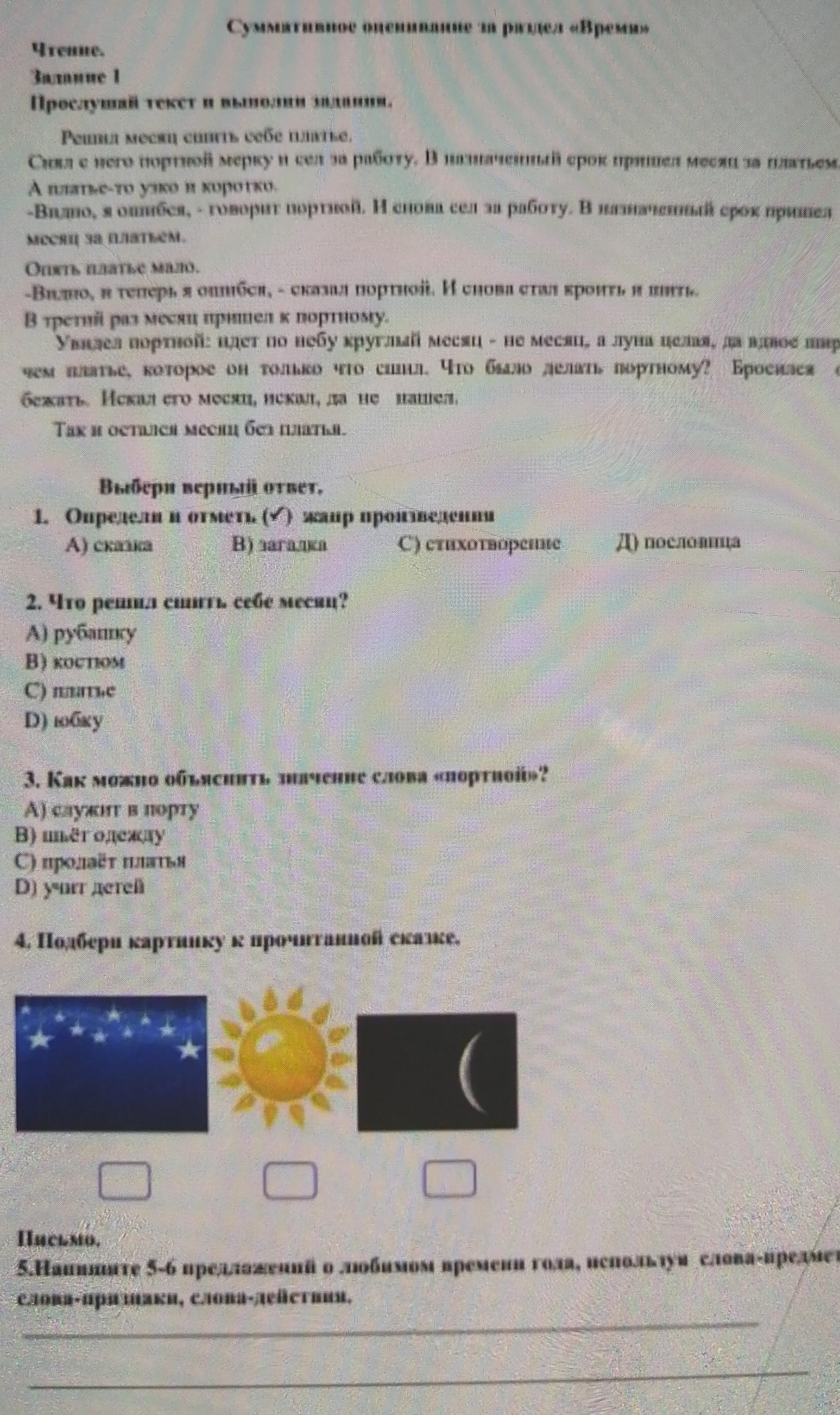 Ответ: 1. А.2. С 3.В 4. (Рисунок луны)