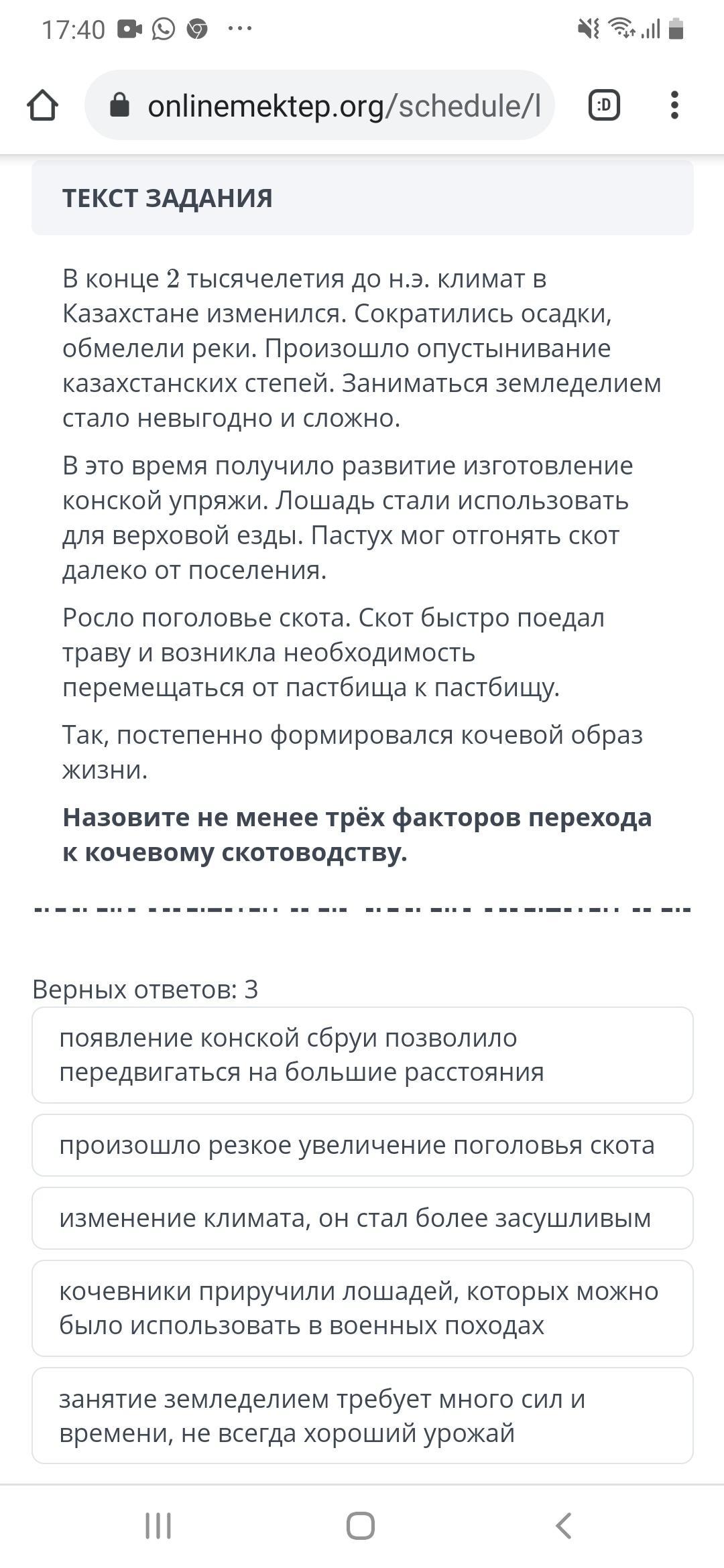 Главная причина перехода к кочевому скотоводству - изменение климата.Появление конской сбруи позволило использовать лошадь для верховой езды и в качестве тяговой силы (Одна из причин перехода к кочевому скотоводству - появление конской сбруи).Резкое увеличение поголовья скота привело к сокращению пастбищ вокруг стоянок (Одна из причин перехода к кочевому скотоводству - резкое увеличение поголовья скота).В отличие от охотников и собирателей, кочевники сами производили продукцию.