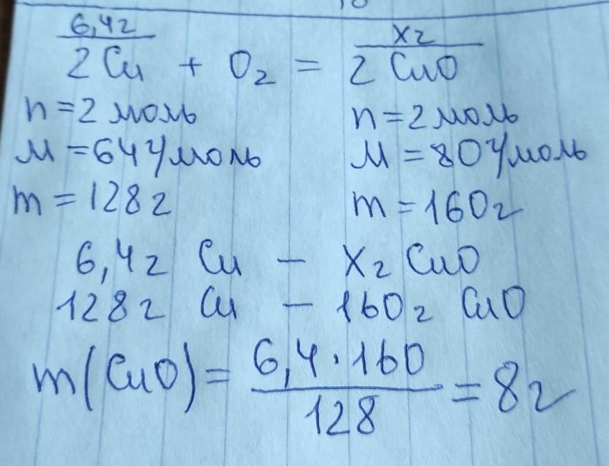 Сколько граммов оксида меди (II) образовалось при взаимодействии 6,4 г меди с кислородом?