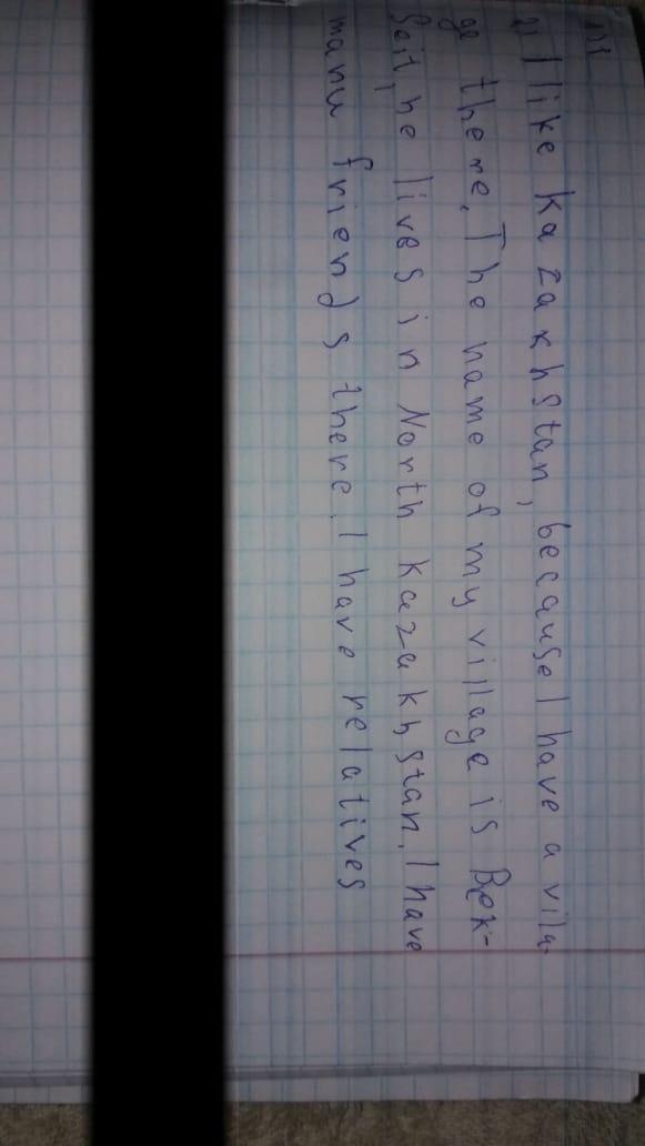 I like Kazakhstan, because I have a village there. The name of my village is BekSait , he lives in North Kazakhstan. I have many friends there. I have relatives
