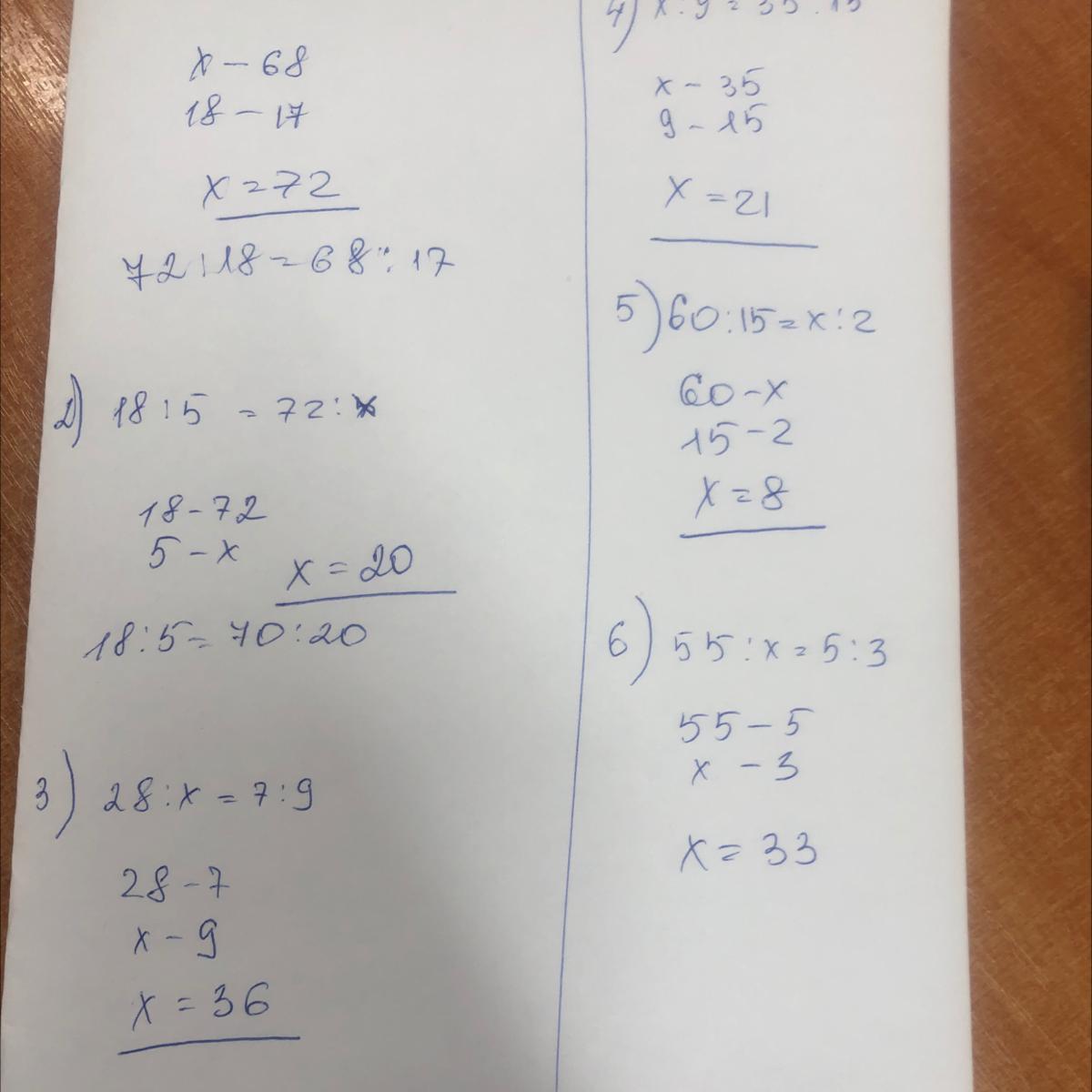 1) 72; 2) 20; 3) 36; 4) 21; 5) 8; 6) 33