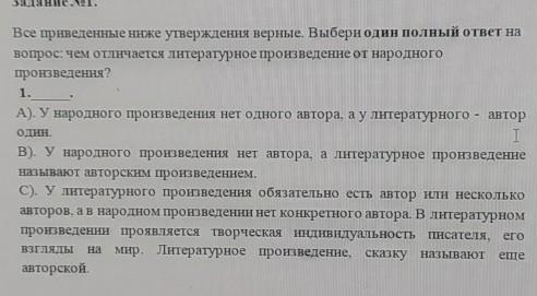 вопрос: чем отличается литературное произведение от народного