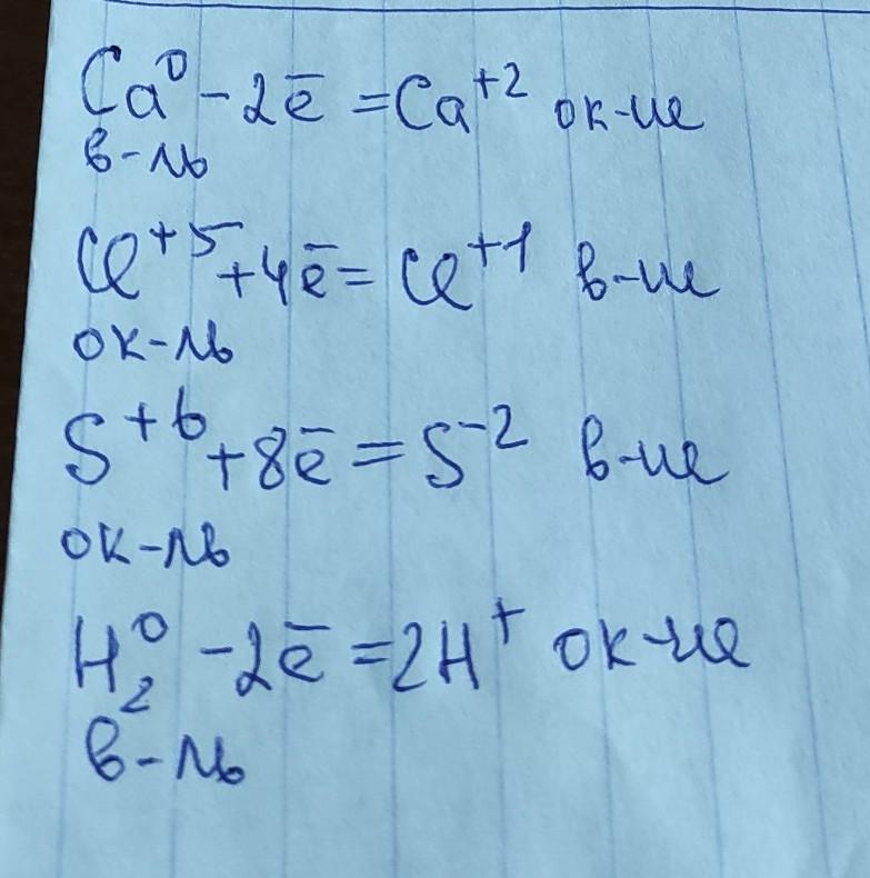 А __ Ca0______ → __ Ca +2 Б __ Cl+5______ → __ Cl +1 В __ S+6 _______ → __ S--2 Г __ Н20 _______ → __ Н+1