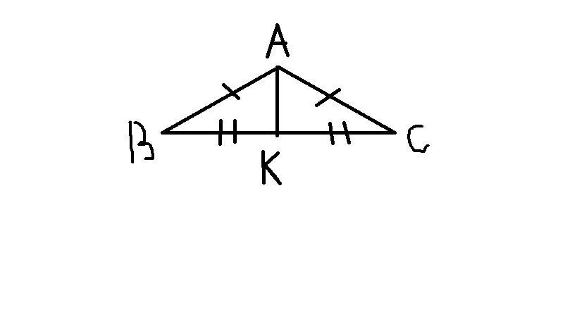 Накресліть тупокутний трикутник АВС з тупим кутом A. За допомогою лінійки з поділкамі проведіть в ньому медіану АК