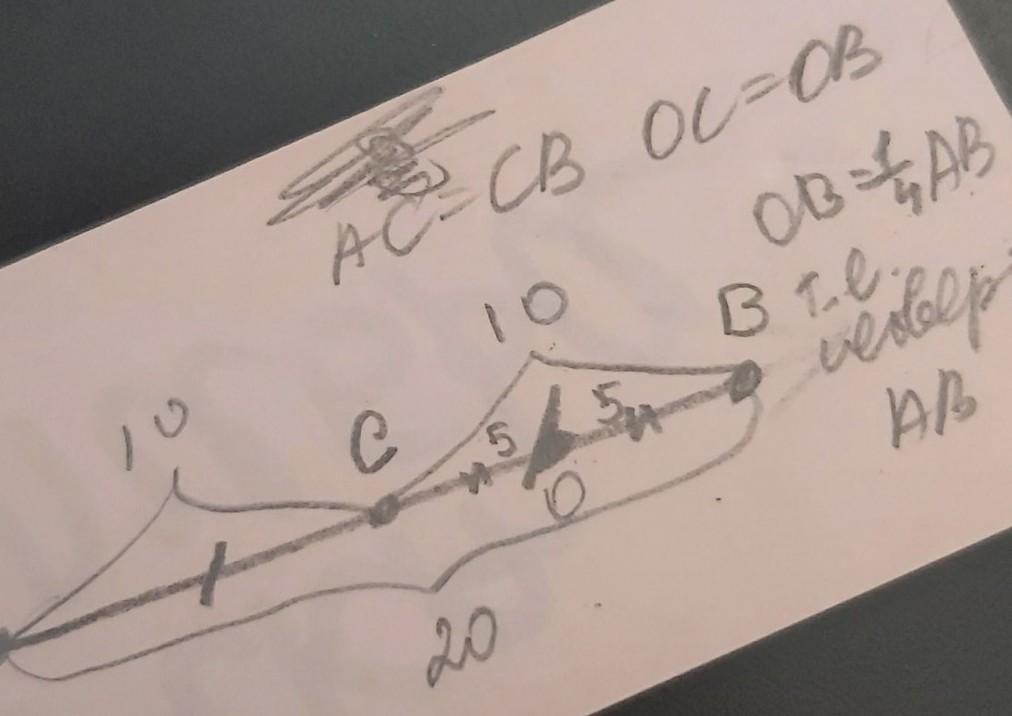 Точка C — середина отрезка AB, а точка O — середина отрезка BC. Найдите длину отрезка OB, если длина отрезка AB = 20 см.