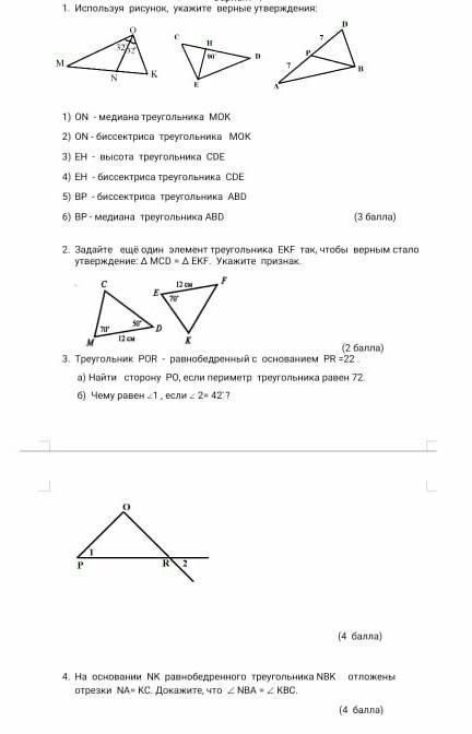 2.По свойству углов при основании равнобедренного треугольника угол 1=углу PRO=42