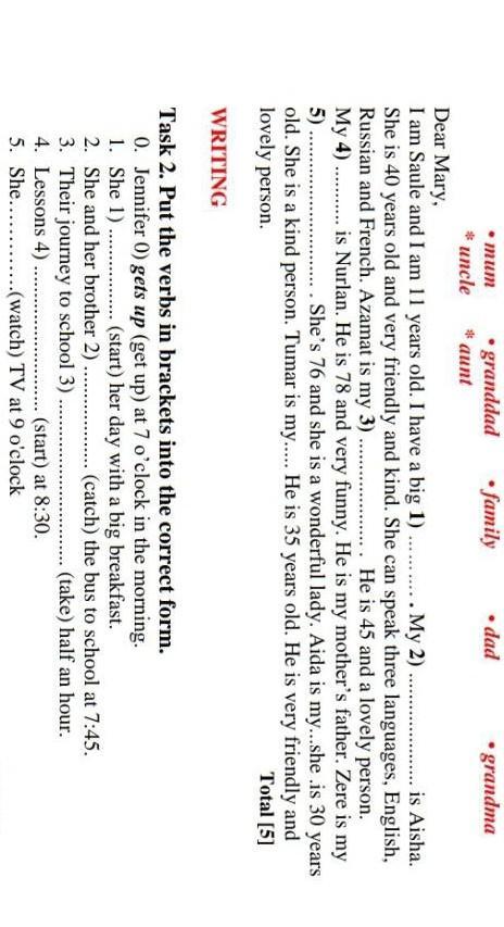 1.1) family 2) mum 3) dad 4) granddad 5) grandma 6) uncle