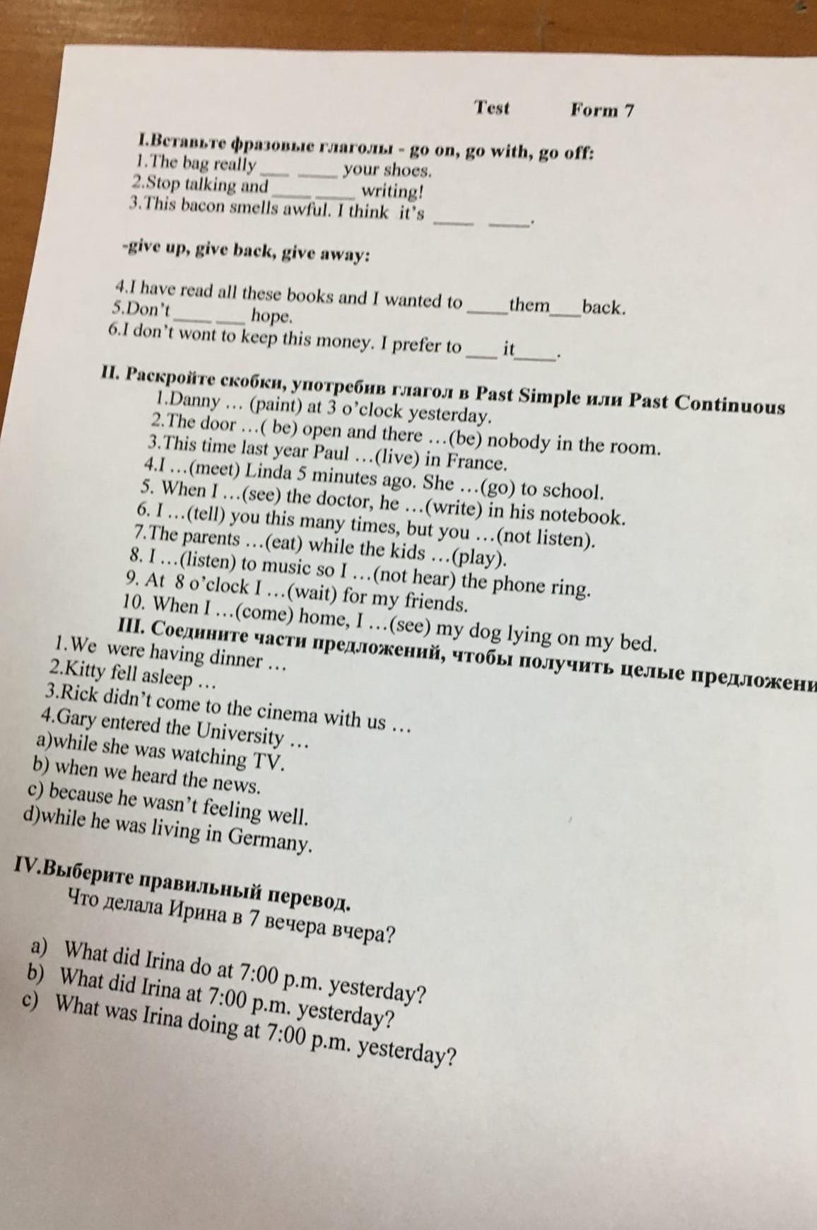 1.1) go with 2) go on 3) go off 4) give back 5) give up 6) give away.