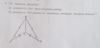 4.По данным рисунка:а)докажите,что треугольники равны.б)докажите,что равны те элементы,которые указаны знаком?