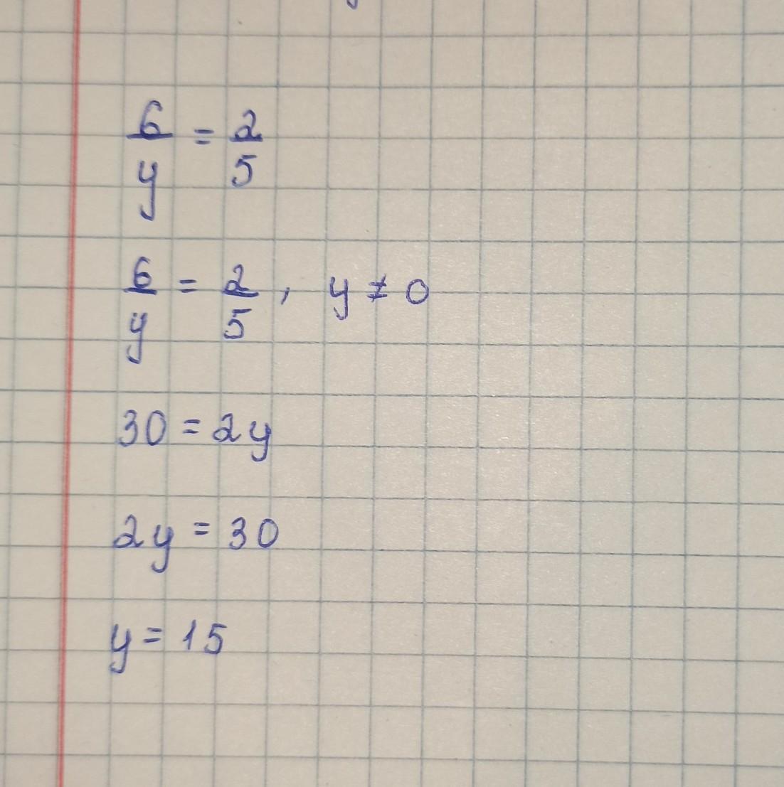 Ответ: y/6 = 2/5 ; y = 6*2/5 = 2,4