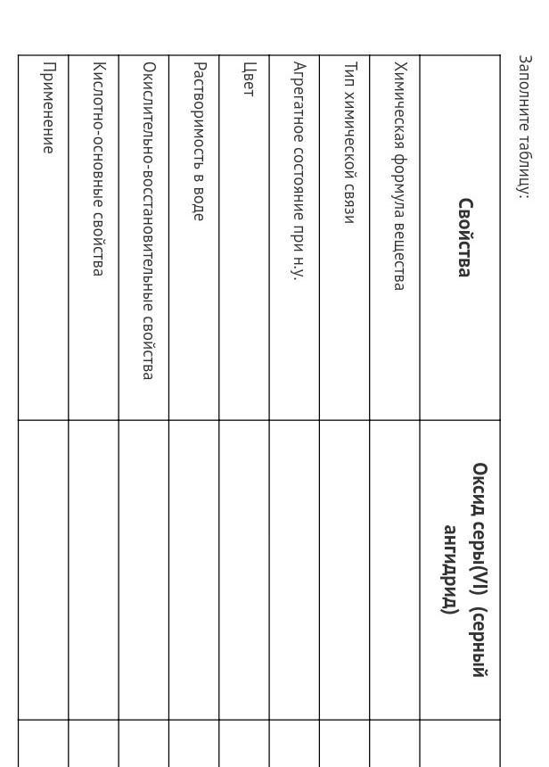 При взаимодействии с водой образует серную кислоту: SO3 + H2O → H2SO4. Взаимодействует с основаниями: 2KOH + SO3 → K2SO4 + H2O, основными оксидами: CaO + SO3 → CaSO4, c амфотерными оксидами: 3SO3 + Al2O3 → Al2(SO4)3. SO3 растворяется в 100%-й серной кислоте, образуя олеум: H2SO4 (100 %) + SO3 → H2S2O7.