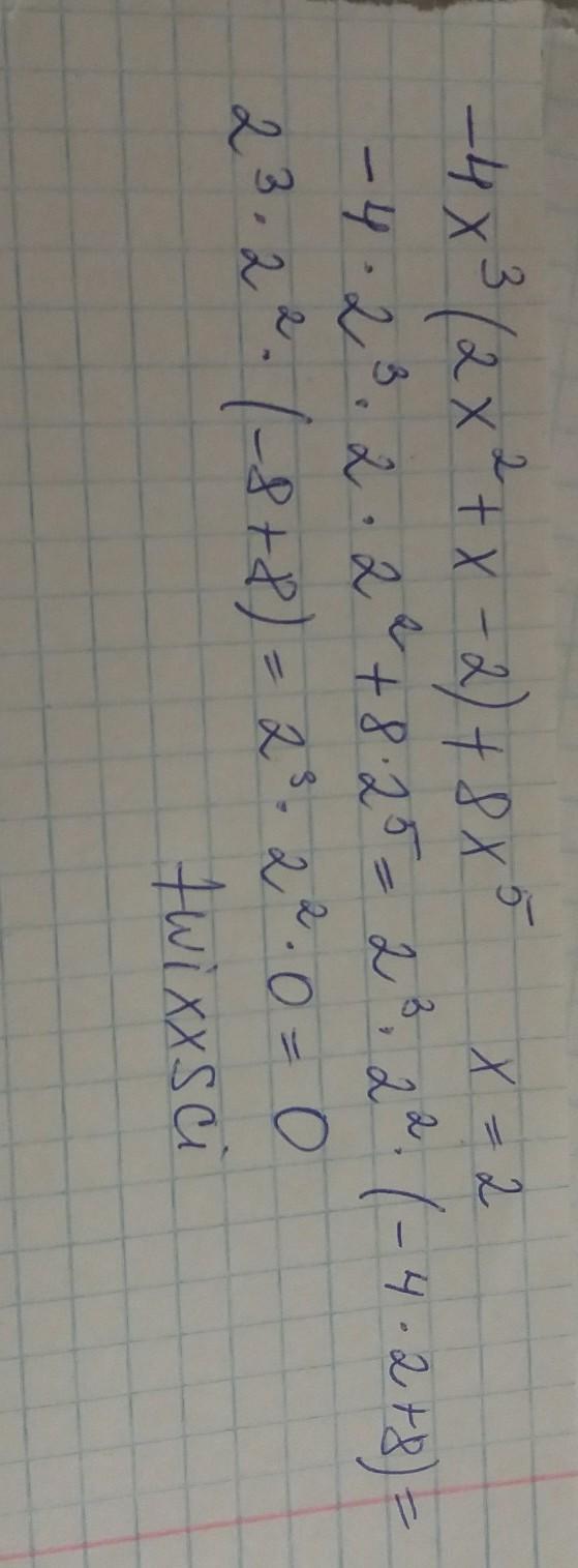 =-4x^3*(2x^2+x-2-2x^2)=-4x^3*(x-2)=-4*2^3*(2-2)=-4*8=32