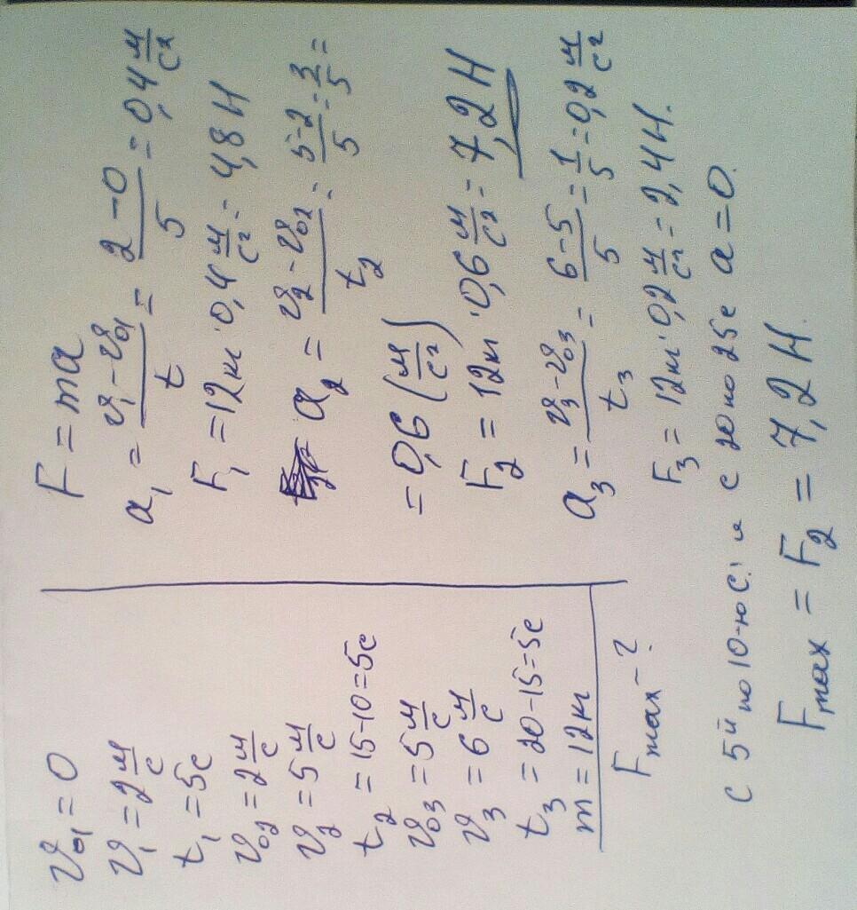 Пользуясь данными графика, определите модуль максимальной силы, действующей на тело, если принять массу равной 12 кг.