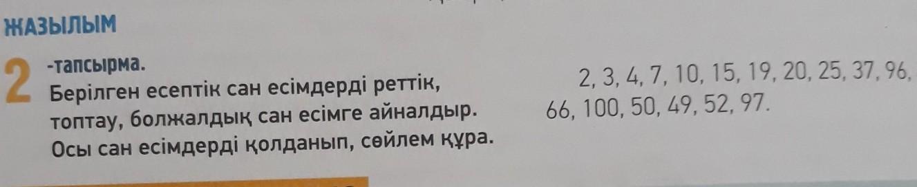 реттік: екінші (Мысал:Менің екінші сыныпта оқитын досым бар)