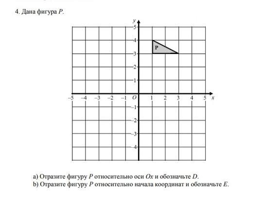 b) Отразите фигуру Относительно начала координат и обозначьте Е.