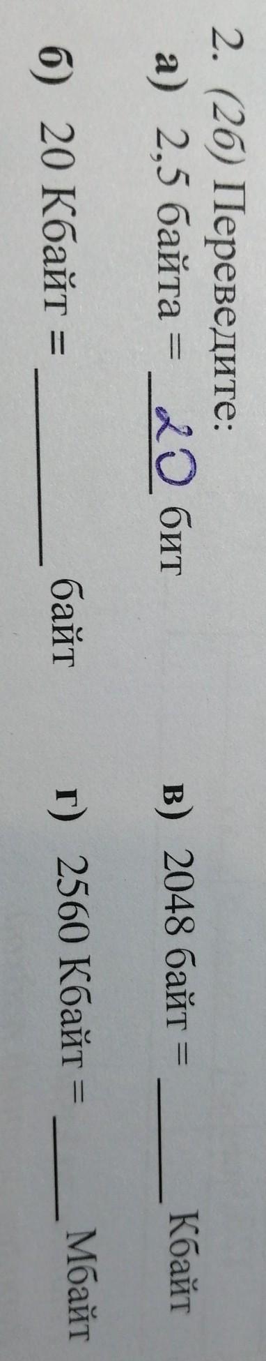 а) 2,5 байта = 20 бит;