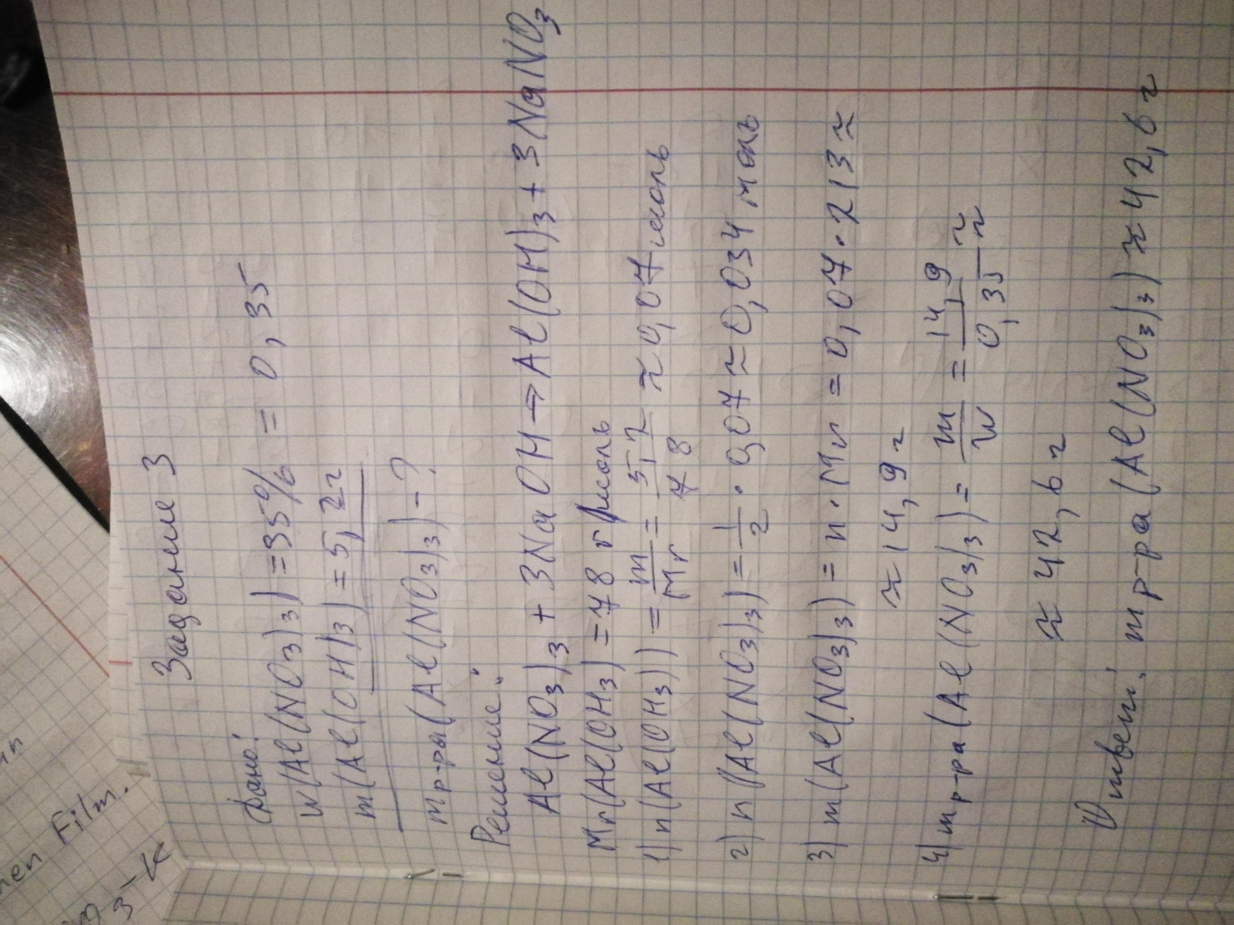 Определите массу раствора нитрата алюминия с массовой долей растворенного вещества 35%, необходимого для получения гидроксида алюминия массой 5,2 г.