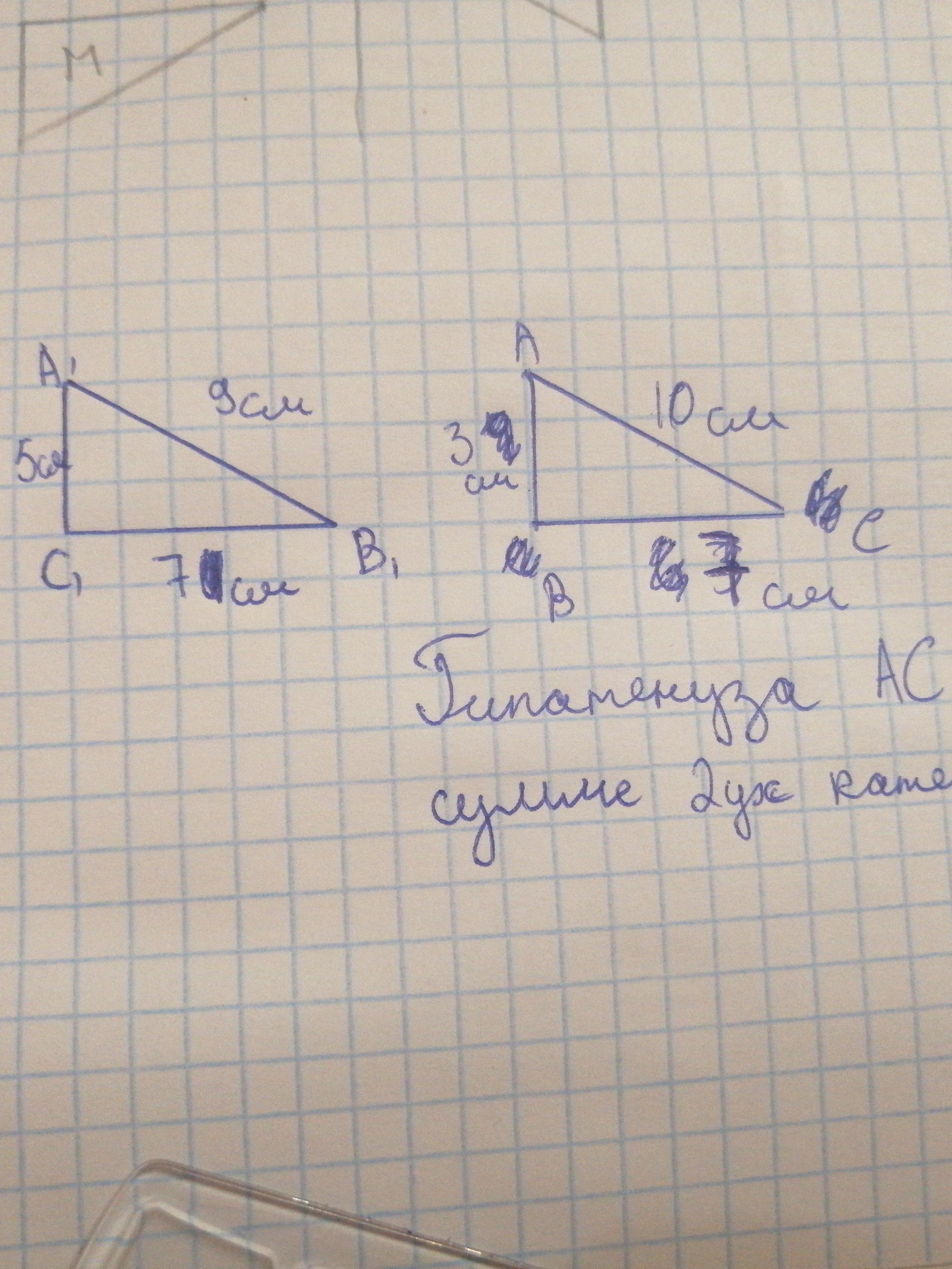 Ответ: AC= BC+AB, а это значит что гипатенуза равна сумме двух катетов, катета AB и BC