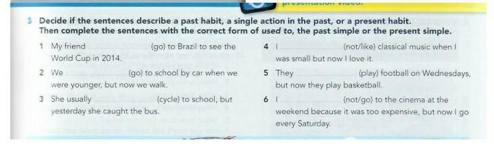 1 went 2 used to go 3 cycles 4 didn't use to like 5 used to play 6 didn't use to go