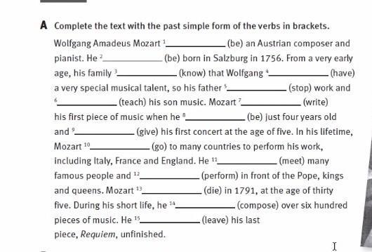 was, was, knew, had, stopped, taught, wrote, was, gave, went, met, performed, died, composed, left