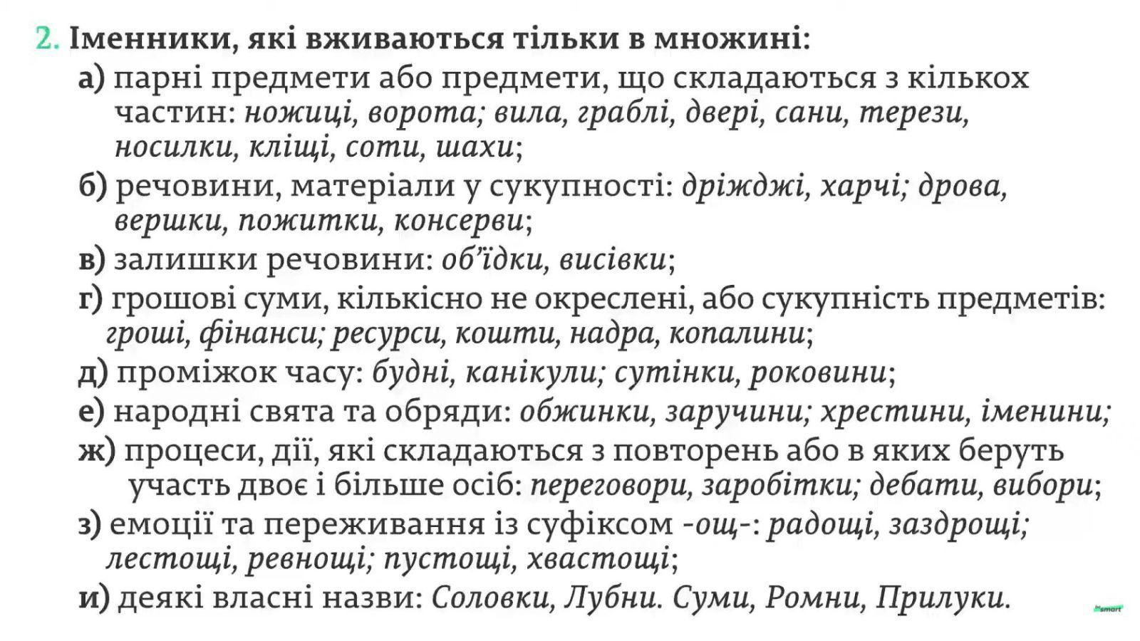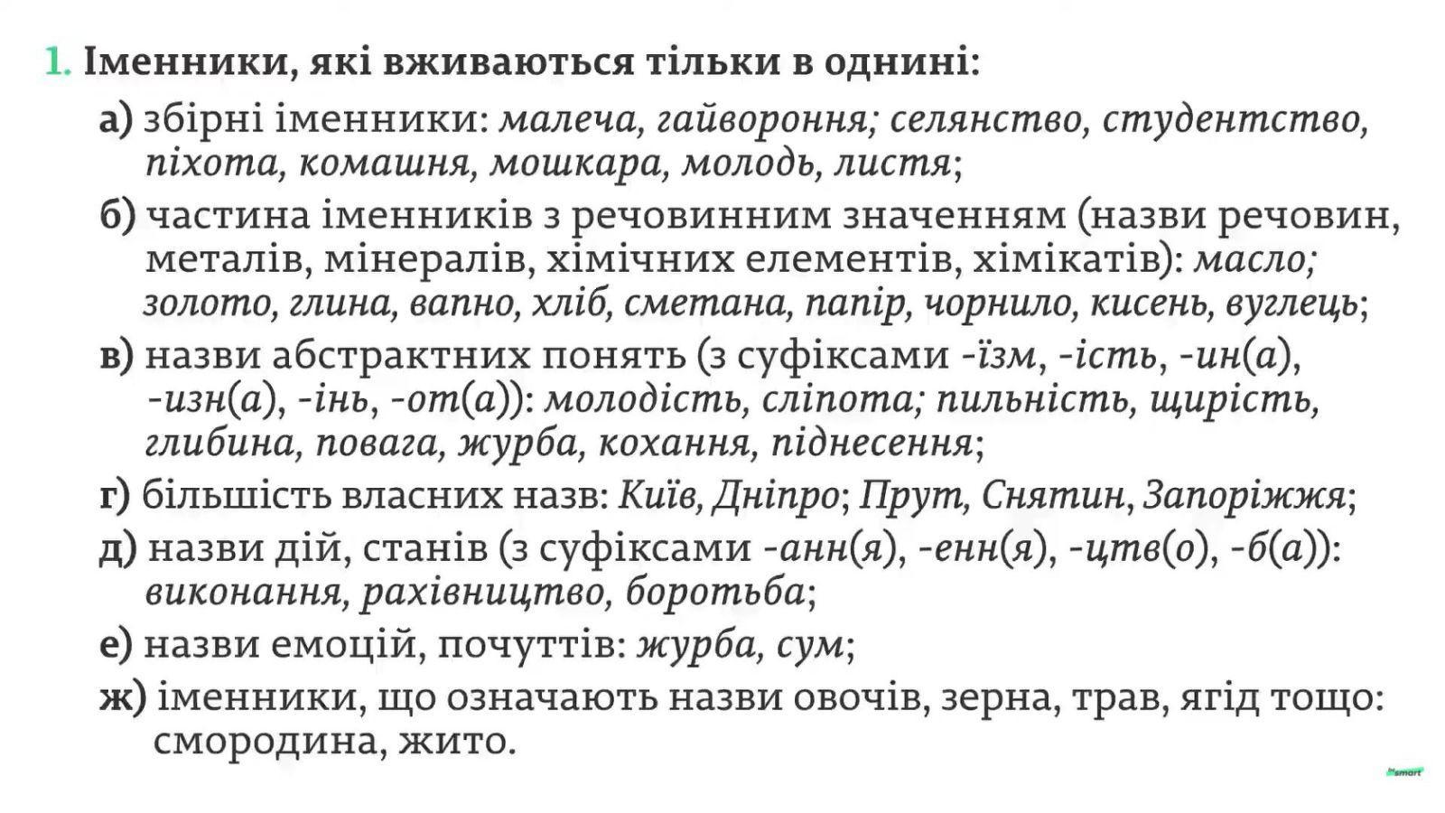 Які слова вживаються тільки в однині а які тільки в множині? Пожалуйста покороче и по понятнее