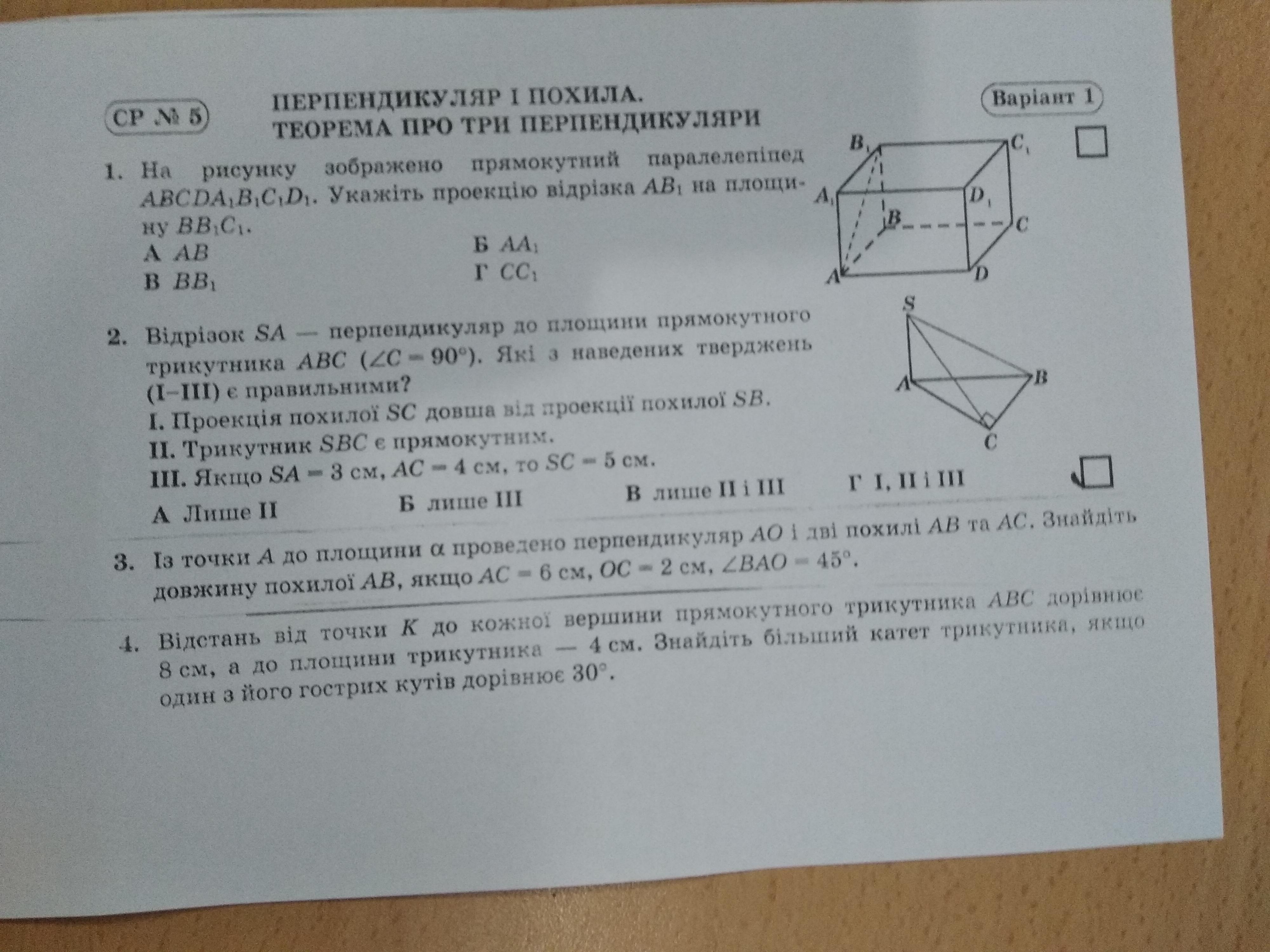 1. в) ВВ1 бо АВ перпендикулярна площині ВВ1С1