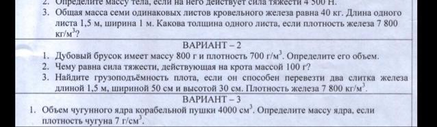 3. m=ρv=7800кг/м3*1,5м*0,5м*0,3м=1 755кг