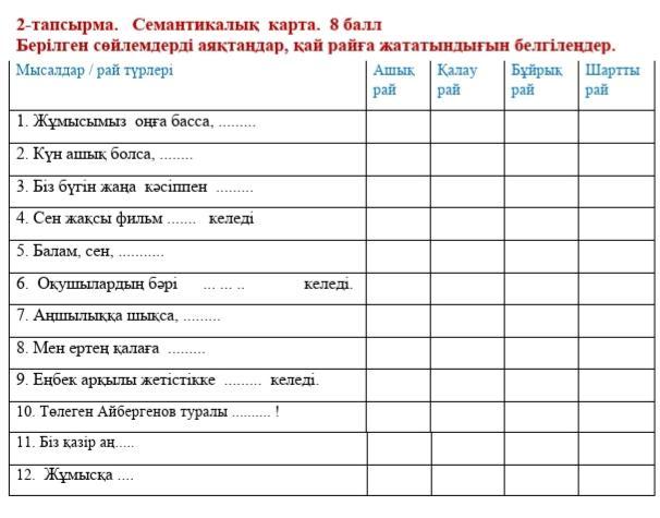 1) Ашық рай: 11, 5, 8, ( 10 мүмкін )