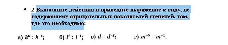 Выполните действия и приведите выражение к виду, не содержащему отрицательных показателей степеней, там, где это необходимо