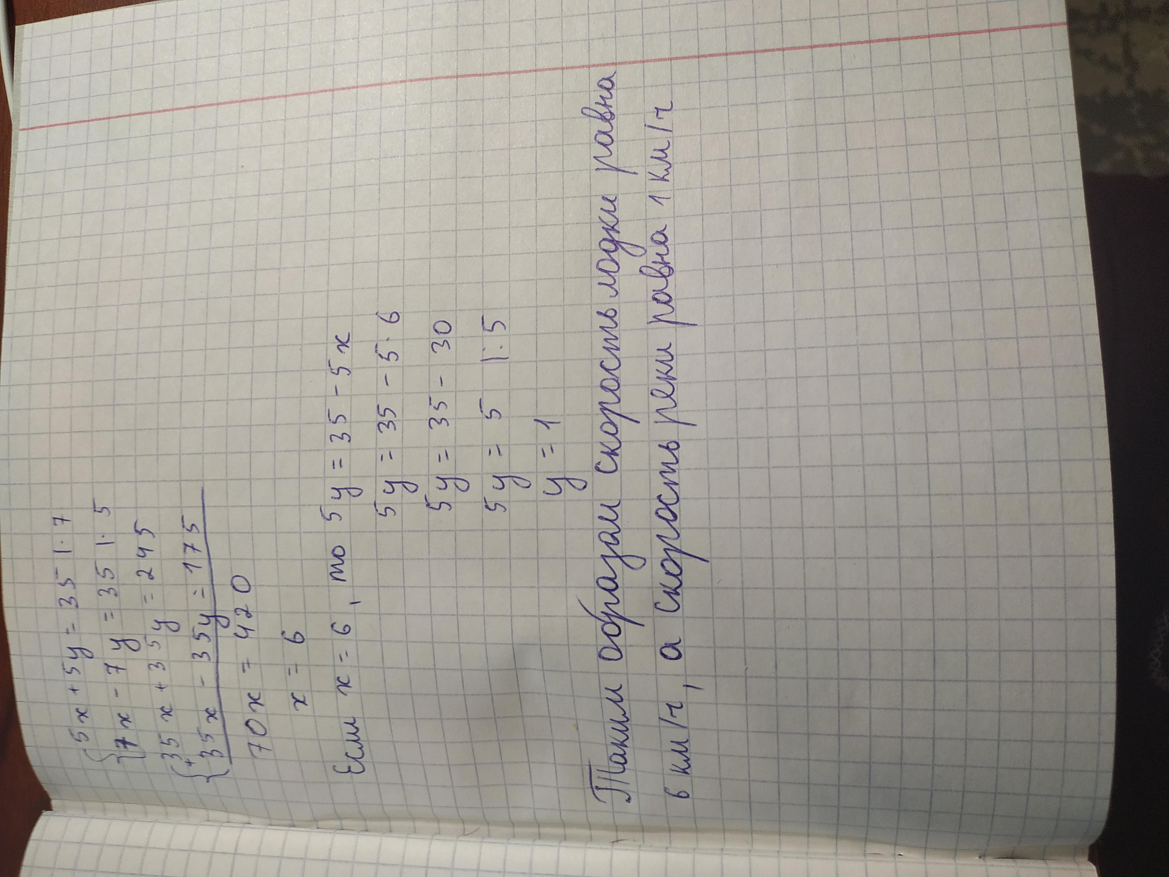 3) 35 : 7 = 5 км/ч - скорость лодки, плывущей против течения.