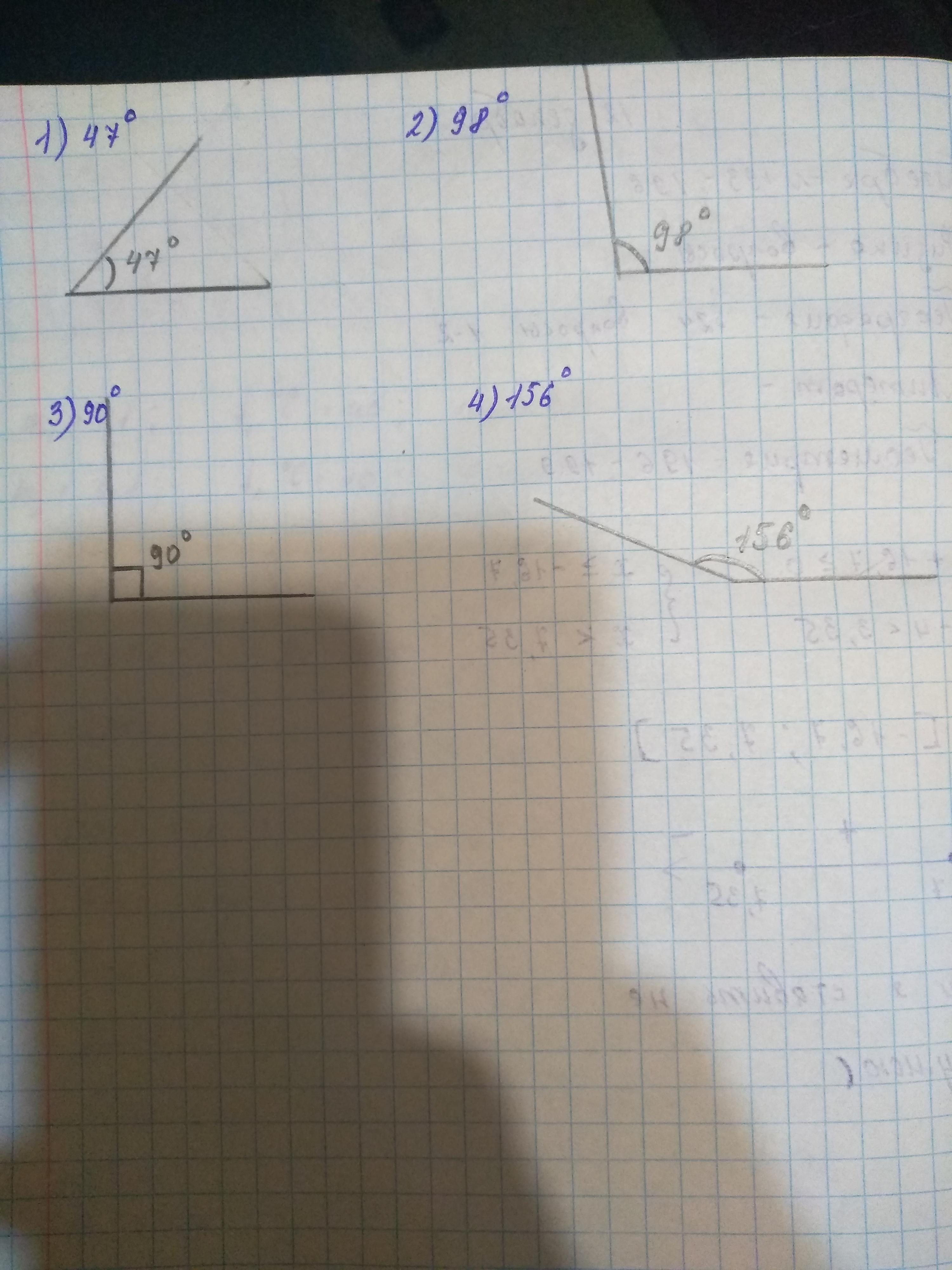 накресліть кут градусна міра якого дорівнює 1)47 градусів 2)98 градусів 3)90 градусів4) 156 градусів