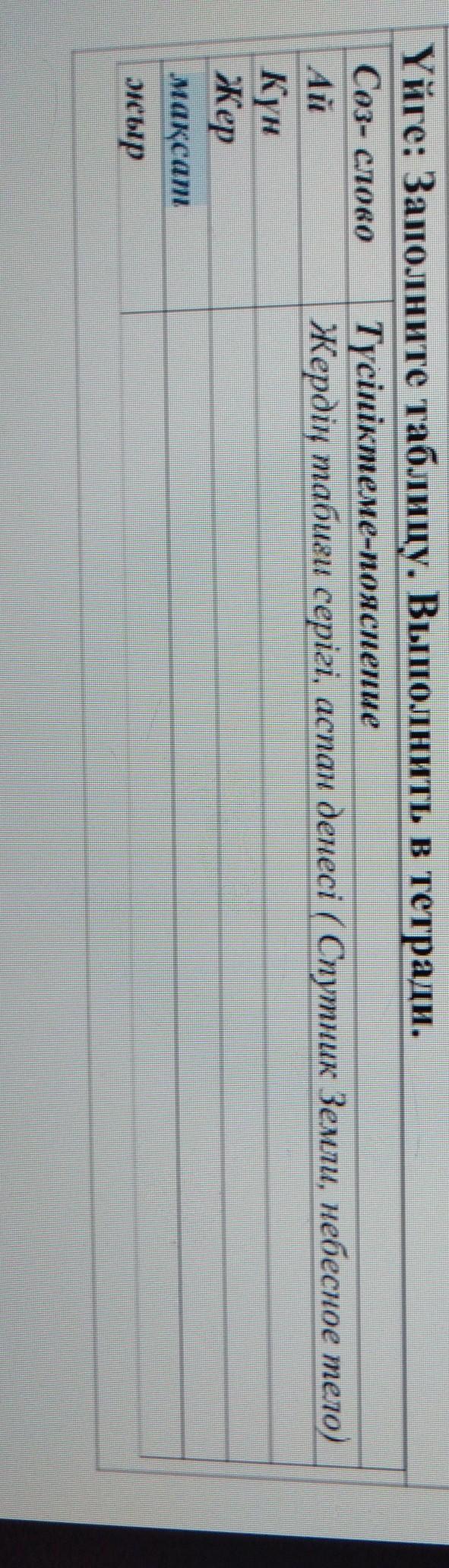 Үйге: Заполните таблицу. Выполнить в тетради.