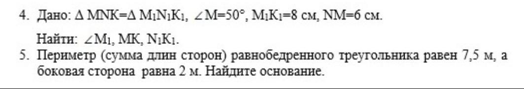 5. боковые стороны равнобедренного треугольника равны, следовательно вторая боковая сторона будет 2м, основание 7,5-(2+2)= 3,5м