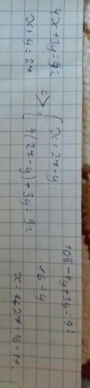 В классе 27 детей детей. В школьном саду каждая девочка посадила по 3 дерева, а каждый мальчик - по 4 дерева. Всего 92 дерево было посажено. Сколько девочек в классе